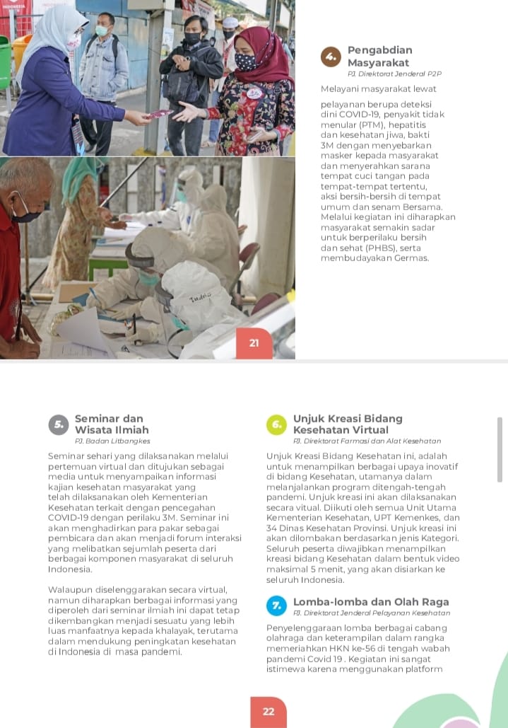 Pada perayaan tahun ini, meski di tengah pandemi. HKN tetap akan dimeriahkan sederet kegiatan, seperti upacara virtual, webinar, jambore kesehatan virtual, lomba olahraga virtual, dan kegiatan bertema kesehatan lainnya.