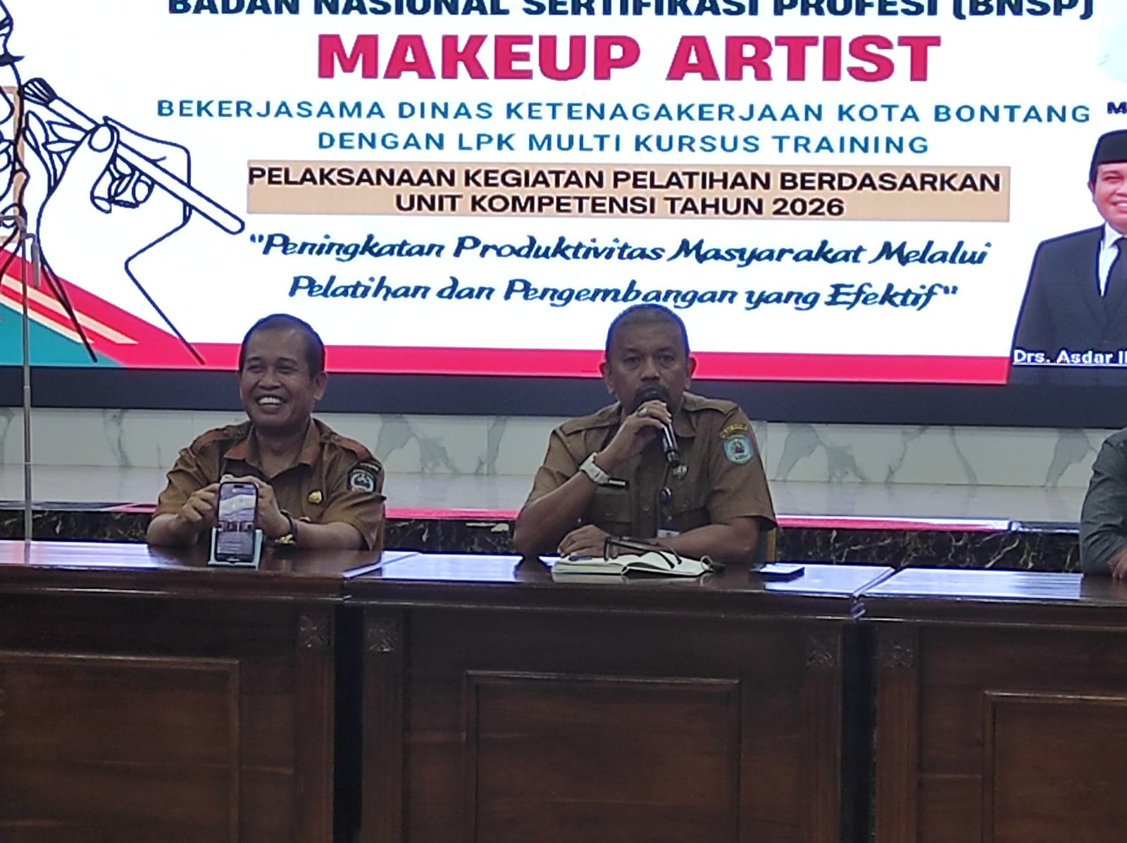 Hal tersebut disampaikan Kepala Bidang Pelatihan Produktivitas dan Penempatan Tenaga Kerja Disnaker Bontang, Lukmanul Hakim, saat memberikan motivasi pada penutupan pelatihan dan uji kompetensi MUA di Auditorium Taman Tiga Dimensi Bontang, Senin (9/2/2026).