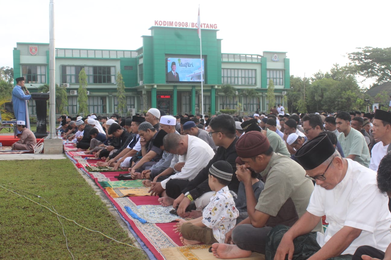 Dialektis.co – Ribuan umat Islam mengikuti Salat Idulfitri 1447 Hijriah yang digelar Kodim 0908/Bontang di Lapangan Makodim 0908/Bontang, Jalan Awang Long, Kelurahan Bontang Baru, Kecamatan Bontang Utara, Sabtu (21/03/2026) kemarin.
