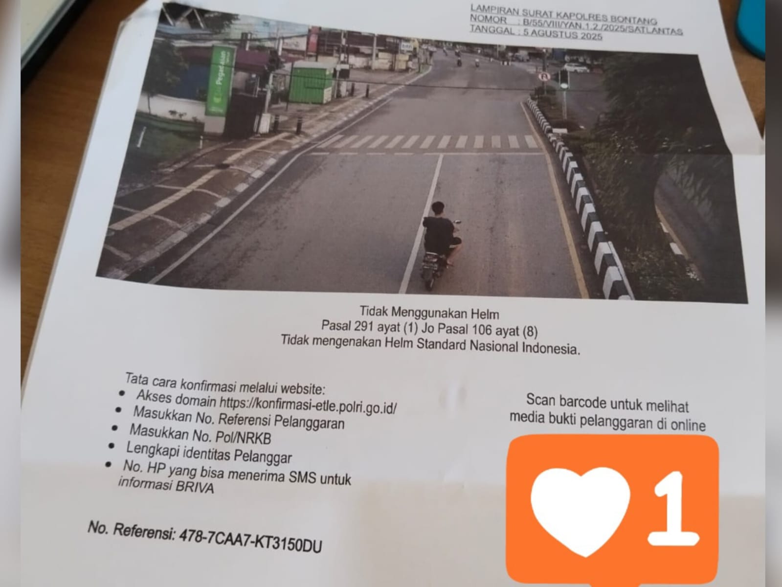 Surat Tilang Elektronik yang Diterima Warga Bontang