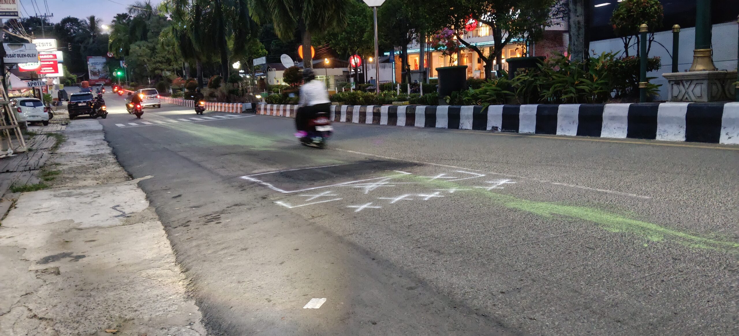 Warga pun berinisiatif menandai jalan amlas tersebut menggunakan cat semprot atau pilox berwarna putih dan merah.