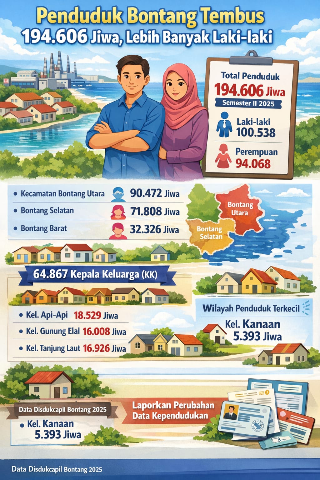 “Data ini merupakan hasil DKB Semester II Tahun 2025 yang menjadi rujukan resmi untuk berbagai keperluan perencanaan pembangunan dan pelayanan publik,” ujarnya saat dikonfirmasi, Selasa (24/2/2026).