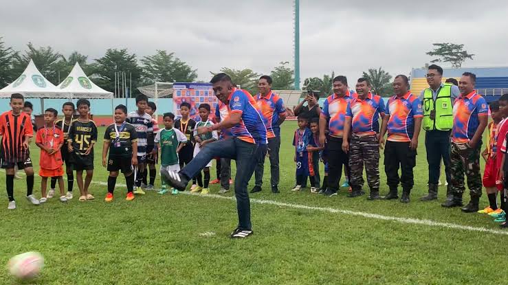 Dialektis.co, Sangatta – Kejuaraan sepak bola usia dini bertajuk Bupati Cup tahun 2025 resmi bergulir dii Stadion Utama Kudungga, Jumat (28/11/2025). Ajang pencari bibit pesepakbola muda paling bergengsi di Kutai Timur (Kutim) di buka Kepala Dinas Pemuda dan Olahraga (Kadispora) Kutim, Basuki Isnawan.