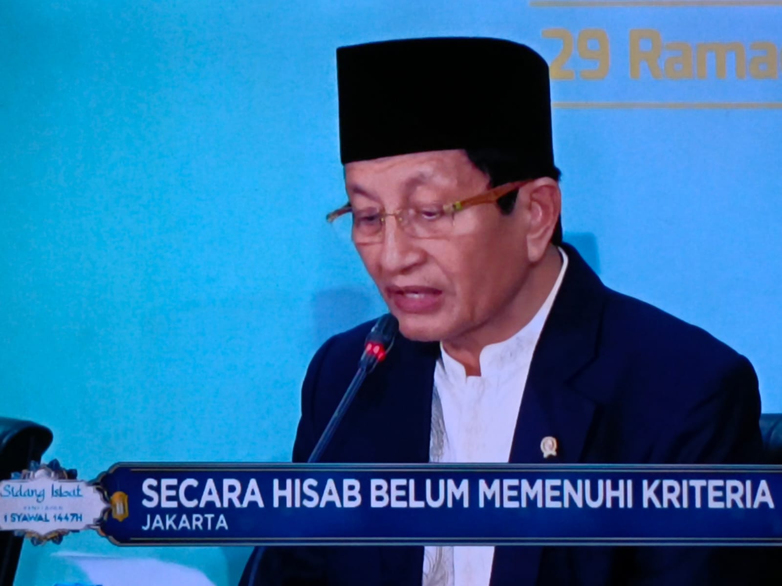 “Posisi hilal saat ini belum memenuhi kriteria baru MABIMS berdasarkan hasil pemantauan (rukyatul hilal) di berbagai titik seluruh Indonesia,” ujar Nasarudin Umar.