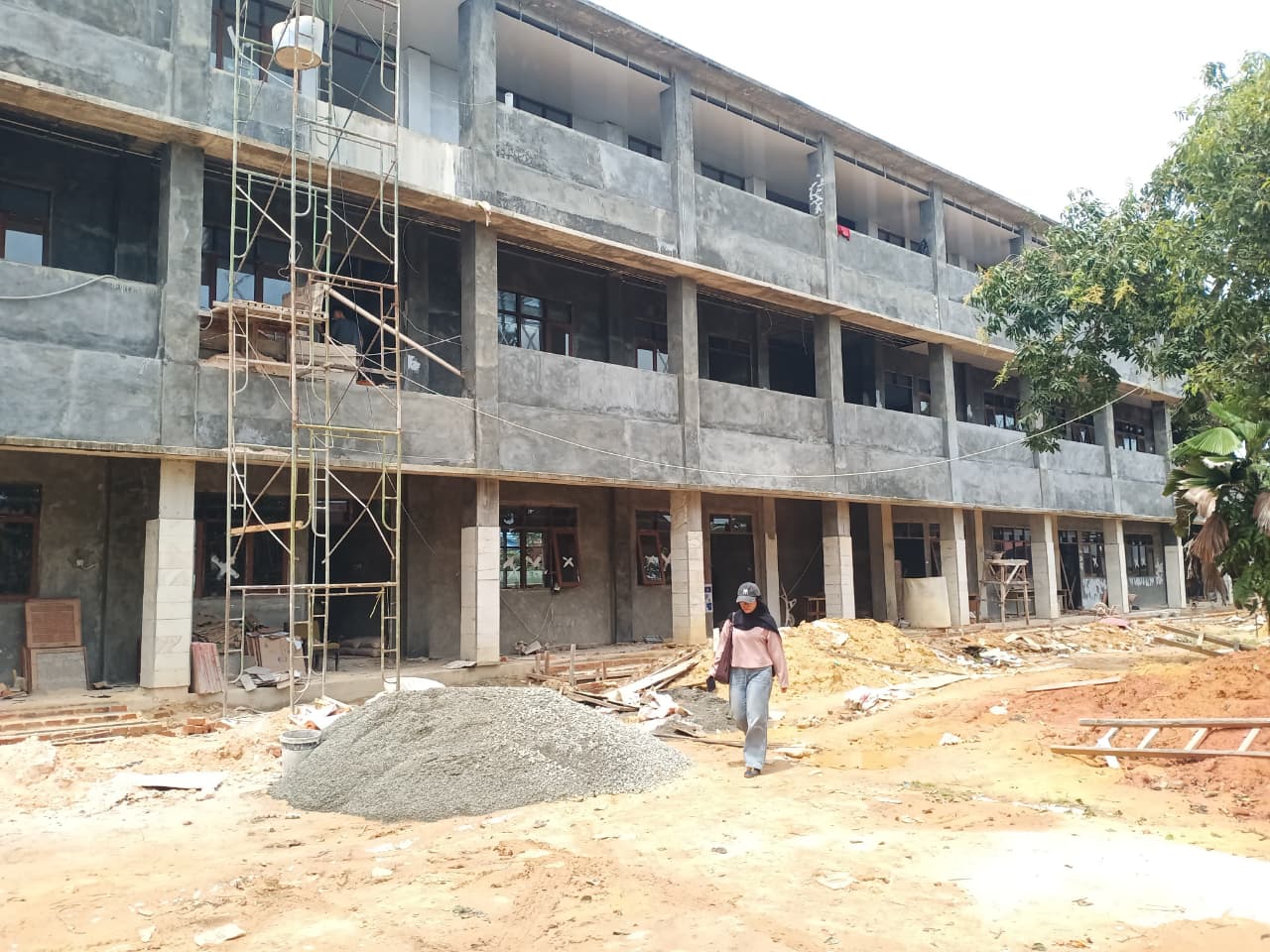 Pantauan, pada Rabu (5/11/2025) sejumlah pekerja bangunan terus melakukan pengerjaan. Tumpukan material proyek pun tampak berada di sekitar lokasi pembangunan.